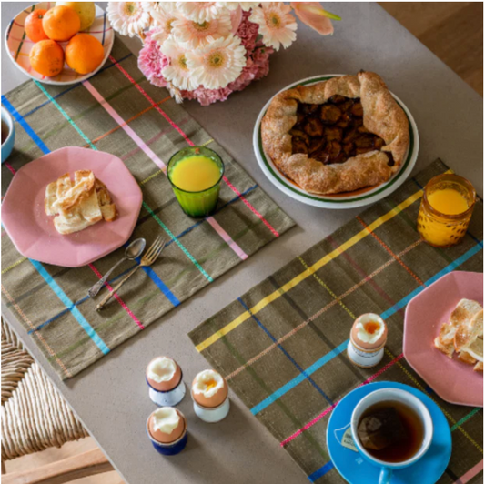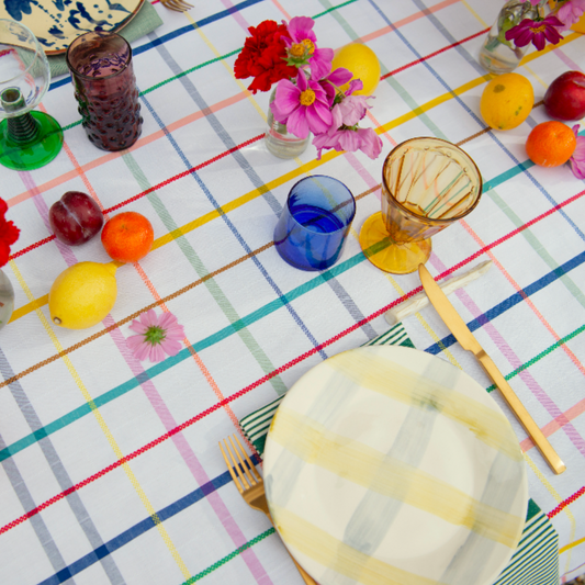 placemats Pop wit geruit linnen-katoen