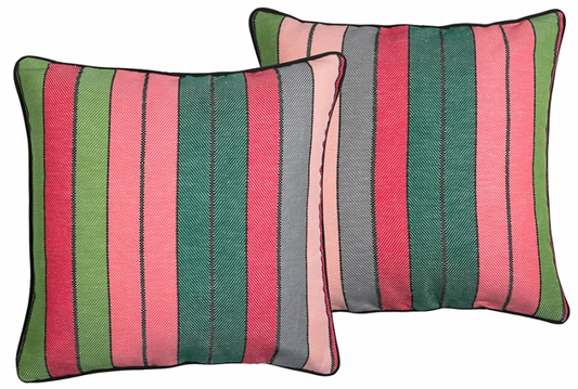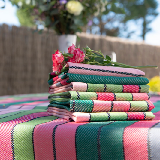 Eugénie roze-groene is een moderne frisse streep met een mooie stof structuur. de kleuren combinatie is geïnspireerd op een watermeloen en doet direct zomers aan.