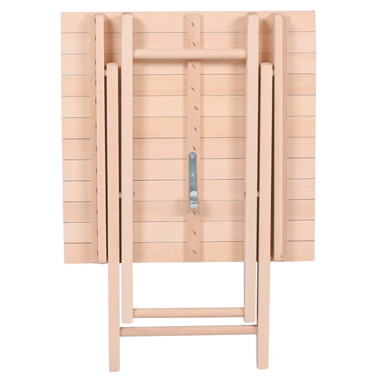 Combineer onze regisseursstoelen met deze houten klaptafel voor een drankje of een hapje en voor als je even echt wilt relaxen, berg je eenvoudig deze bistro set op en pak je onze strandstoelen erbij.