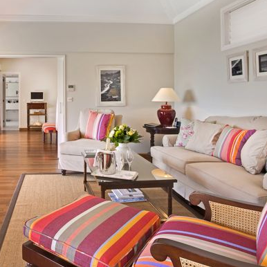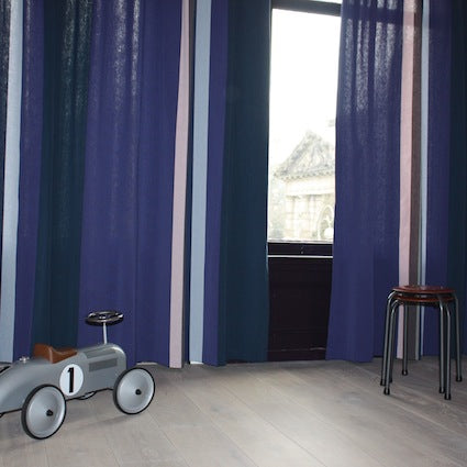 Voor de kussens in het interieur gebruiken we onze ruime collectie katoenen stoffen. Kies je streep en mix en match het met een anders streep of wissel de voor- en achterkant van je kussens af met horizontale en verticale strepen. Omdat ook deze katoenen stoffen extra breed zijn, variërend van 165 cm tot 185 cm, waarbij de strepen over de volle breedte lopen kun je afhankelijk van het formaat, meerder kussenvlakken naast elkaar knippen uit de breedte van de stof. Hierdoor zie bij het eindresultaat dat de kussens bij elkaar horen, maar niet identiek is. Ieder kussen heeft zijn eigen uniek uitstraling, maar er is wel samenhang tussen de kussens door het kleurgebruik omdat de kussens van dezelfde stof gemaakt zijn.