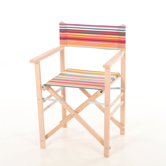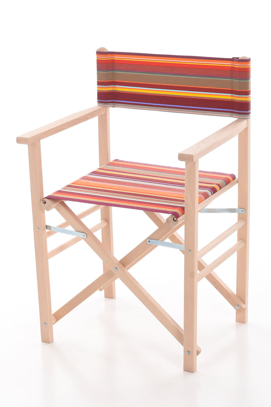 Welke bekleding je kiest in je ouderwetse strandstoel, regisseursstoel of inklap krukje, naast zitcomfort geeft het ook een leuk kleuraccent in je buiten. Doordat de stoffen bekleding makkelijk uit het frame te halen is, kun je makkelijk van loper wisselen of de loper wassen. Maak je ideale zitje af met onze houten opklaptafel.