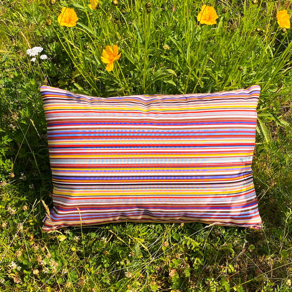 Outdoor stof Tom bis met haar verfijnde primair gekleurde streeppatroon is een kleurrijke aanwinst voor je buiten.
