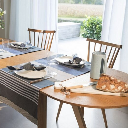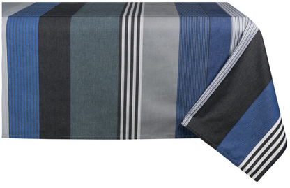 Met haar frisse geweven strepen in zwart, blauw, grijs en wit geeft afwasbaar tafelkleed miramar je tafel een rijke en verzorgde uitstraling.