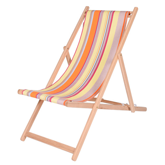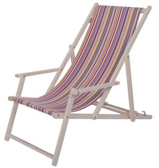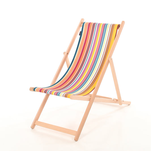 De beukenhouten ouderwetse strandstoel kun je onbehandeld laten zodat hij onder invloed van de weersomstandigheden vergrijst. Of behandel de houten ligstoel met blanke lak, of een leuke kleur om hem te laten matchen met de rest van je buiten.