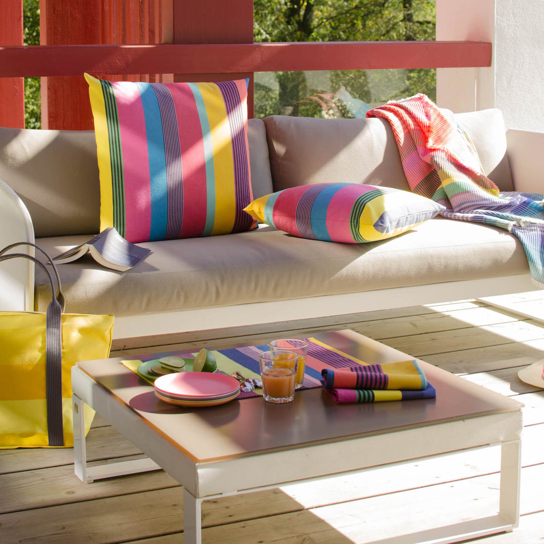 Bring the sun into your home by giving your interior a fresh makeover. How do you turn your entire house into one big spring party, you may wonder? Simple, use color! There is one color synonymous with spring that guarantees a good mood and that color is yellow. Whether you combine it with pure white, fresh green or bright blue. Give your home a very sunny look - are you already mentally lying in the grass looking at the clouds? With the help of sunny textiles on the sofa or at the table, this won't last long. Our cotton fabrics with their woven stripes in cheerful colors instantly give you a spring feeling in your home (and in your head). Choose our yellow / white cotton linen striped fabric Yvonne , or make it colorful with one of our multicolored striped fabrics in cotton or coated cotton for tablecloths. Style it off by placing some large bunches of flowers. Don't be afraid of color: the brighter the better! Although we wouldn't say no to a fresh yellow bouquet of daffodils either.