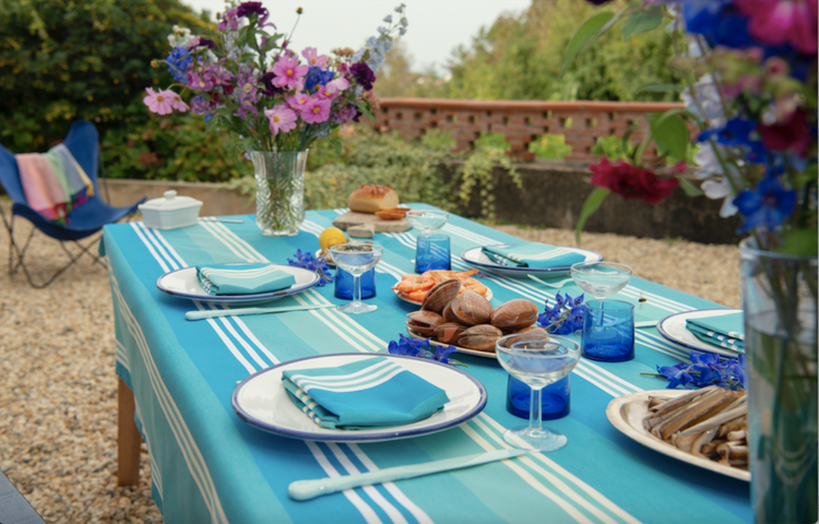 Naast tafellinnen biedt kleurmeester ook sierkussens aan, gemaakt van deze prachtige turquoise stof. Met de sierkussens kun je snel en eenvoudig een vleugje kleur en sfeer toevoegen aan elke kamer in huis. Of je nu je woonkamer wilt opfleuren of een zomerse sfeer wilt creëren op je terras, de aqua blauwe kussens van kleurmeester zijn een perfecte keuze.