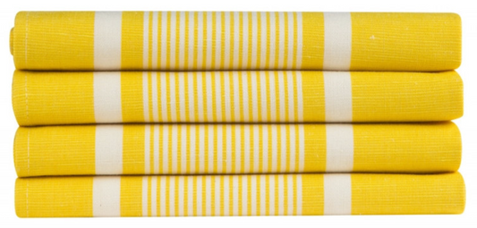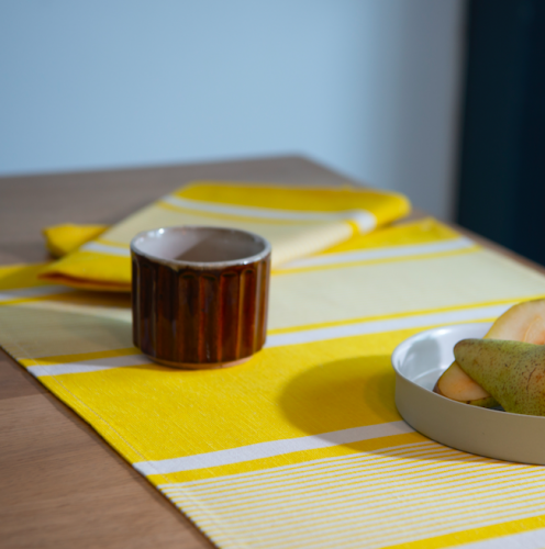 The sun is here! Cheerful yellow and white striped cotton linen fabric. With regular mirrored stripes. And occasionally a beautiful flax structure due to the addition of 40% linen to it organically grown cotton.