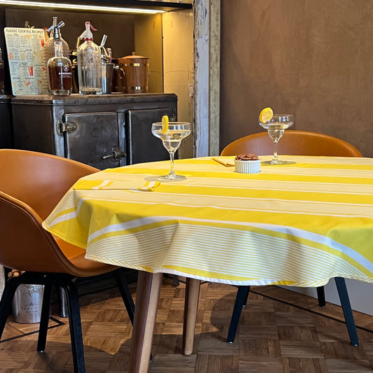 Round tablecloth made of removable cotton-linen Yvonne yellow