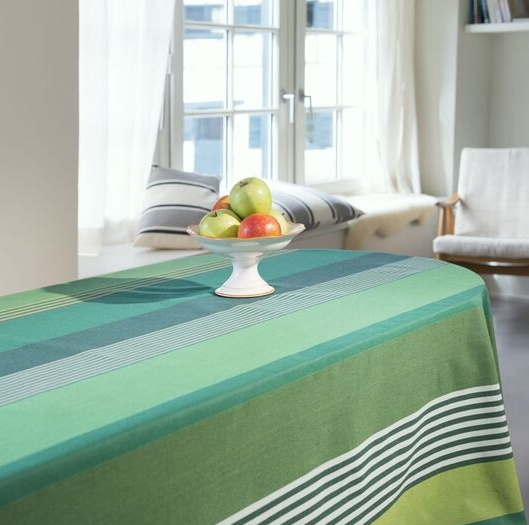 Stoffen met coating, waar onze tafelkleden voor buiten van gemaakt zijn, zijn prima geschikt voor buitengebruik. Doordat we het katoen behandeld hebben met 3 lagen coating van acryl, is het tafelkleed waterbestendig. Toch kan er schimmel ontstaan wanneer er water of vocht onder het buiten tafelkleed komt. We raden dan ook af om continu je tafelkleed buiten te laten liggen. Dit komt namelijk de kwaliteit en levensduur van het tuintafelkleed niet ten goede. De strepen kunnen aan de boven zijde verkleuren wanneer het langere tijd in de zon ligt. De basis van de tuintafelkleden blijft immers katoen. Wanneer je het buiten tafellaken na gebruik en 's nachts netjes binnen opbergt, zal het langer meegaan.
