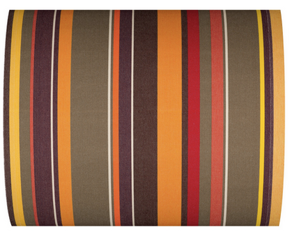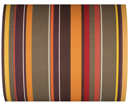Warmly colored outdoor fabric Coupon Saint Laurent gives your chair an attractive look with its brown, red, orange, yellow and purple stripes.
