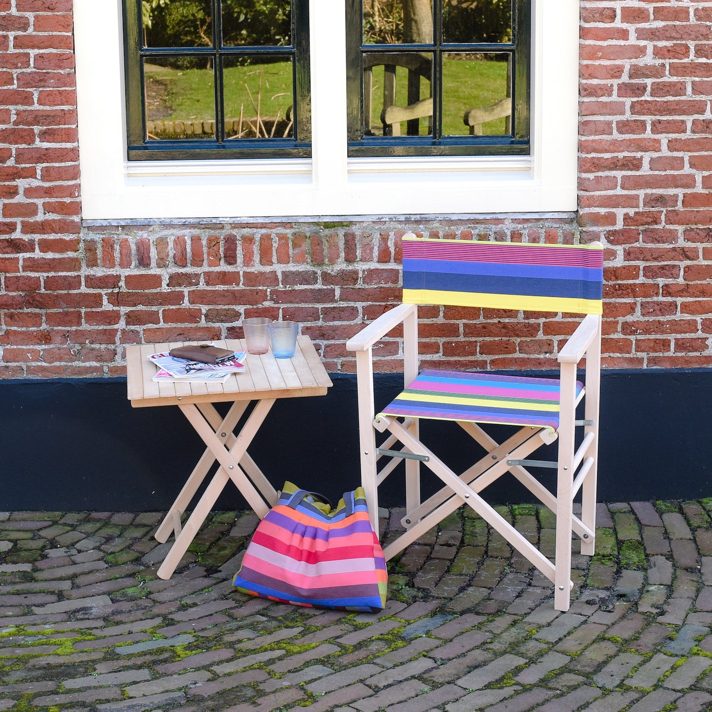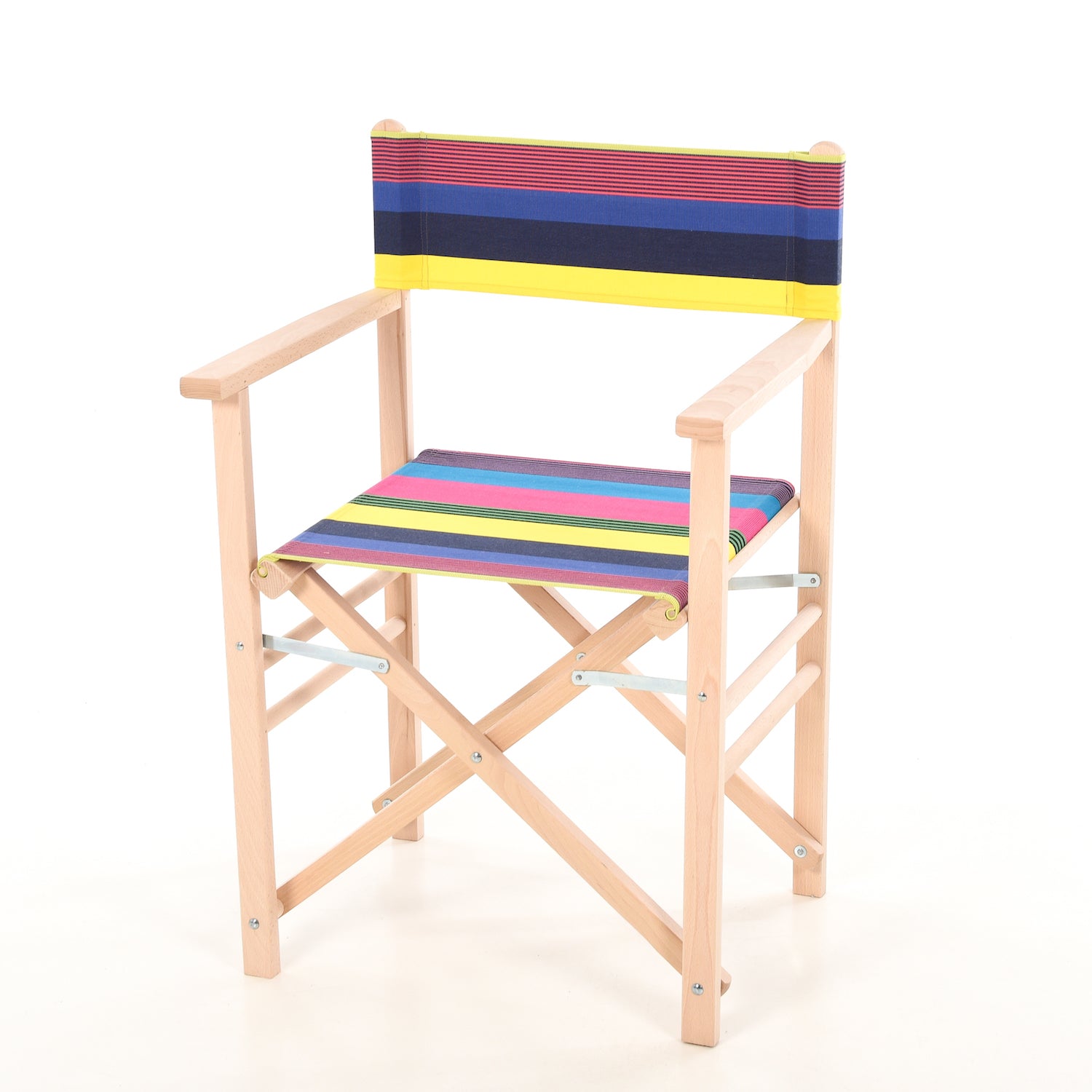 Director's chair Belize gives you a sunny feeling, regardless of whether you sit inside or outside! The director's chair is foldable, has laterally reinforced and crossed legs and a straight backrest. The untreated frame is made of beech wood. The cover is made of thick cotton canvas and is removable and washable.