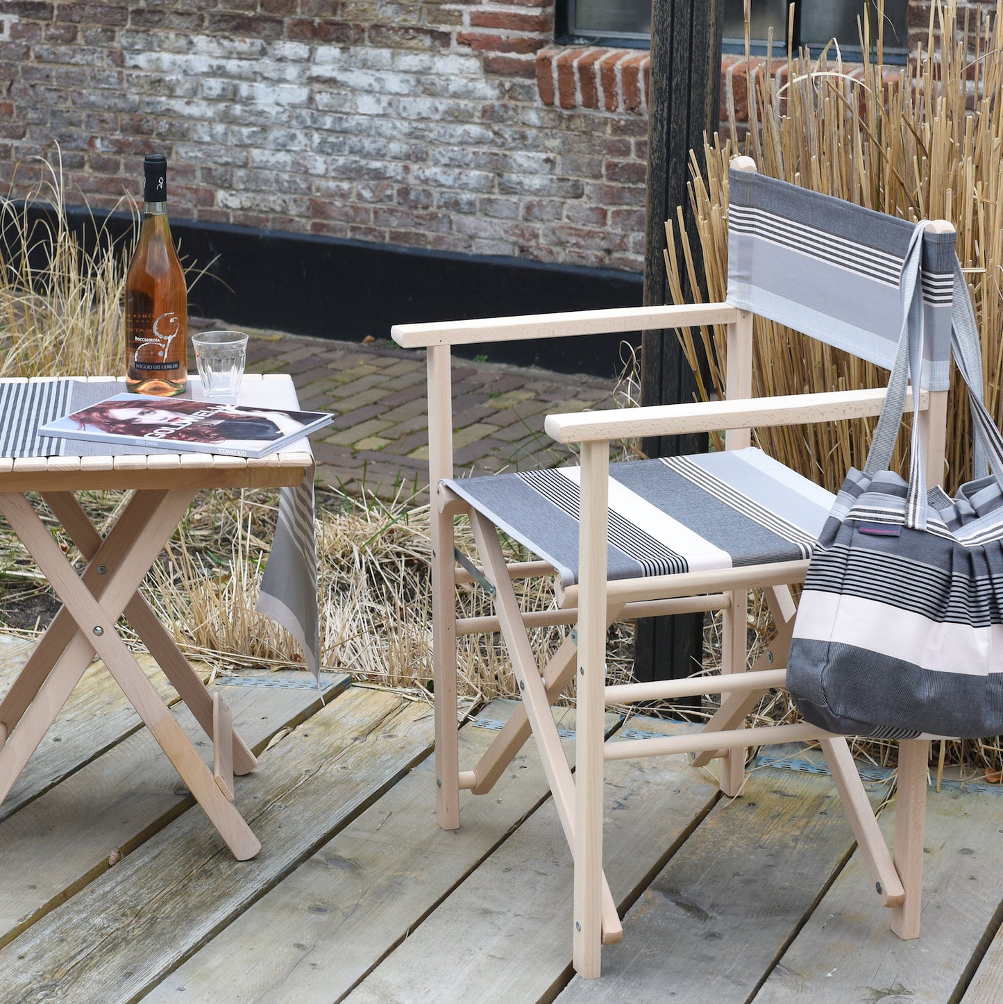 Always stylish: a combination of black, white, gray and wood. With the rhune director's chair you can create a wonderful, warm and stylish seating area wherever you want. Together with the wooden folding table you will have a nice bistro set in no time.