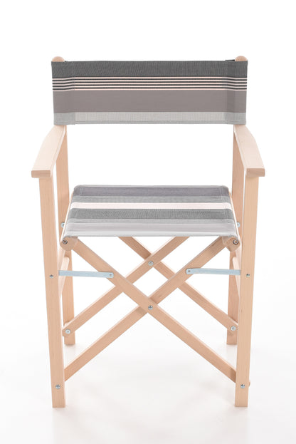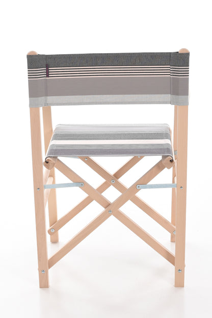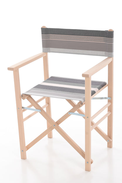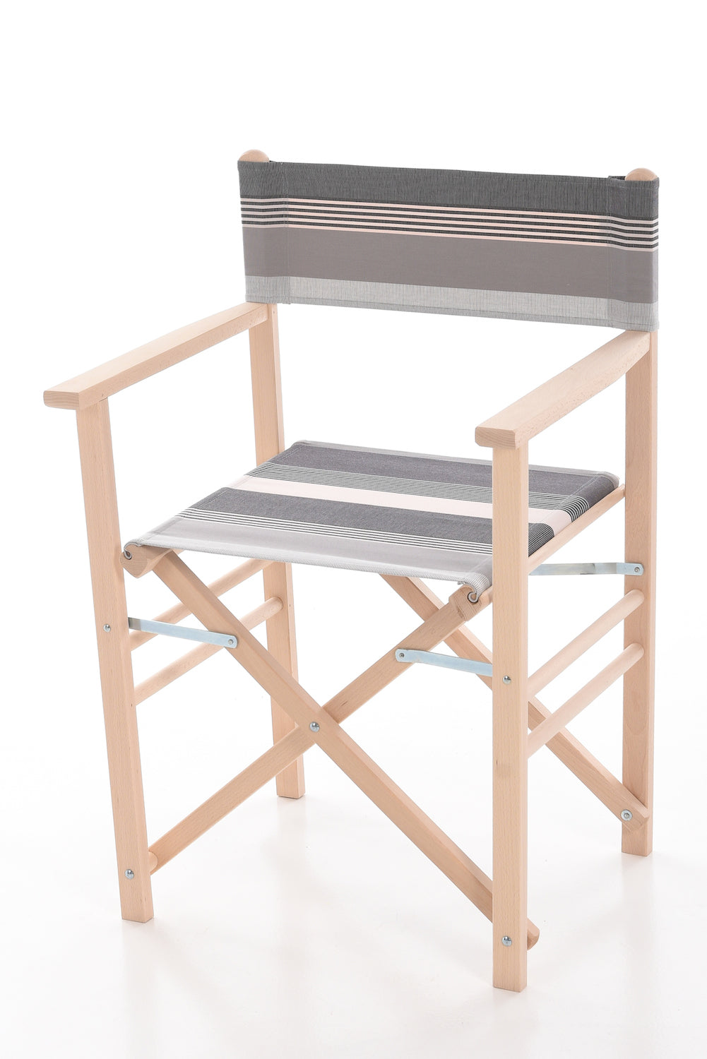 This untreated director's chair, made of beech wood, is fully foldable, has side-reinforced and crossed legs and a straight backrest. The thick cotton canvas cover is removable and washable.