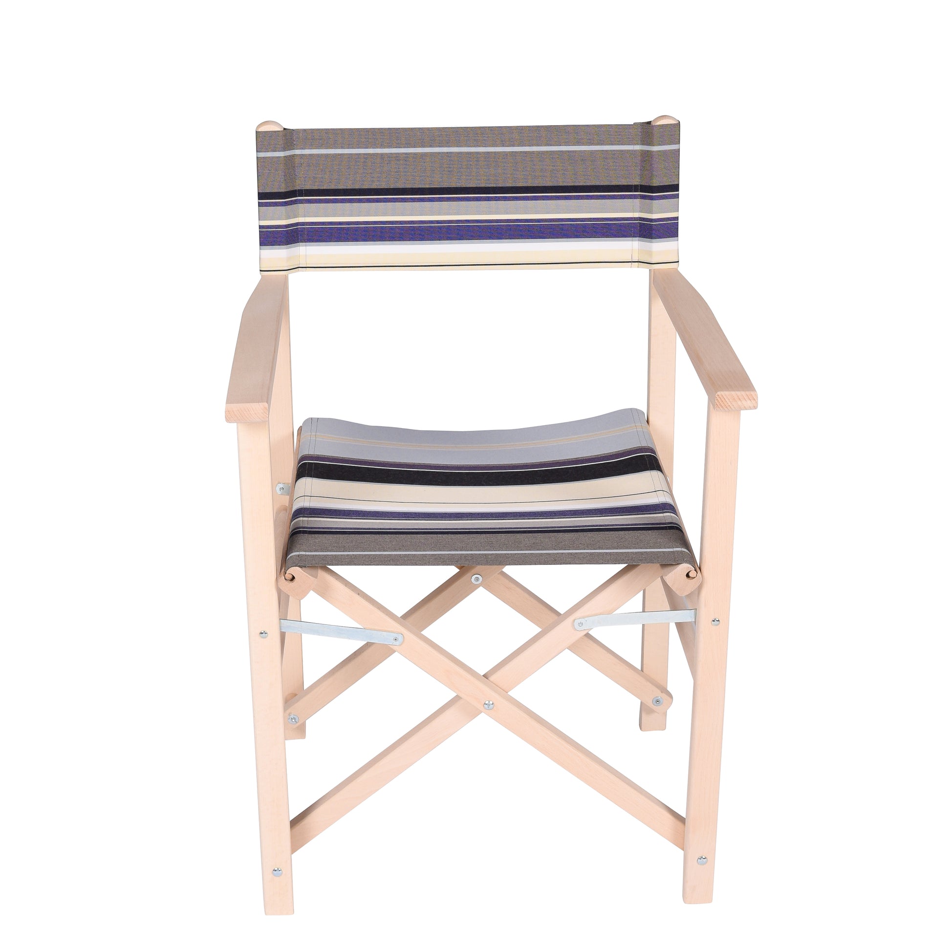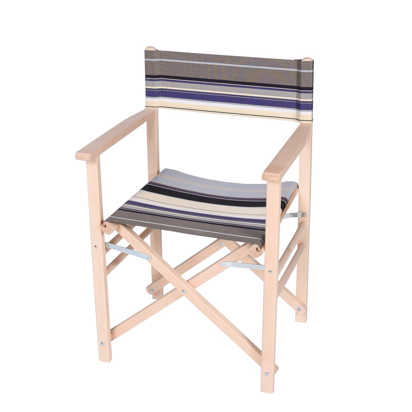 This director's chair is foldable and has side-reinforced and crossed legs and a straight backrest. The untreated frame is made of solid beech wood and provides natural warmth, a rural and cozy atmosphere.