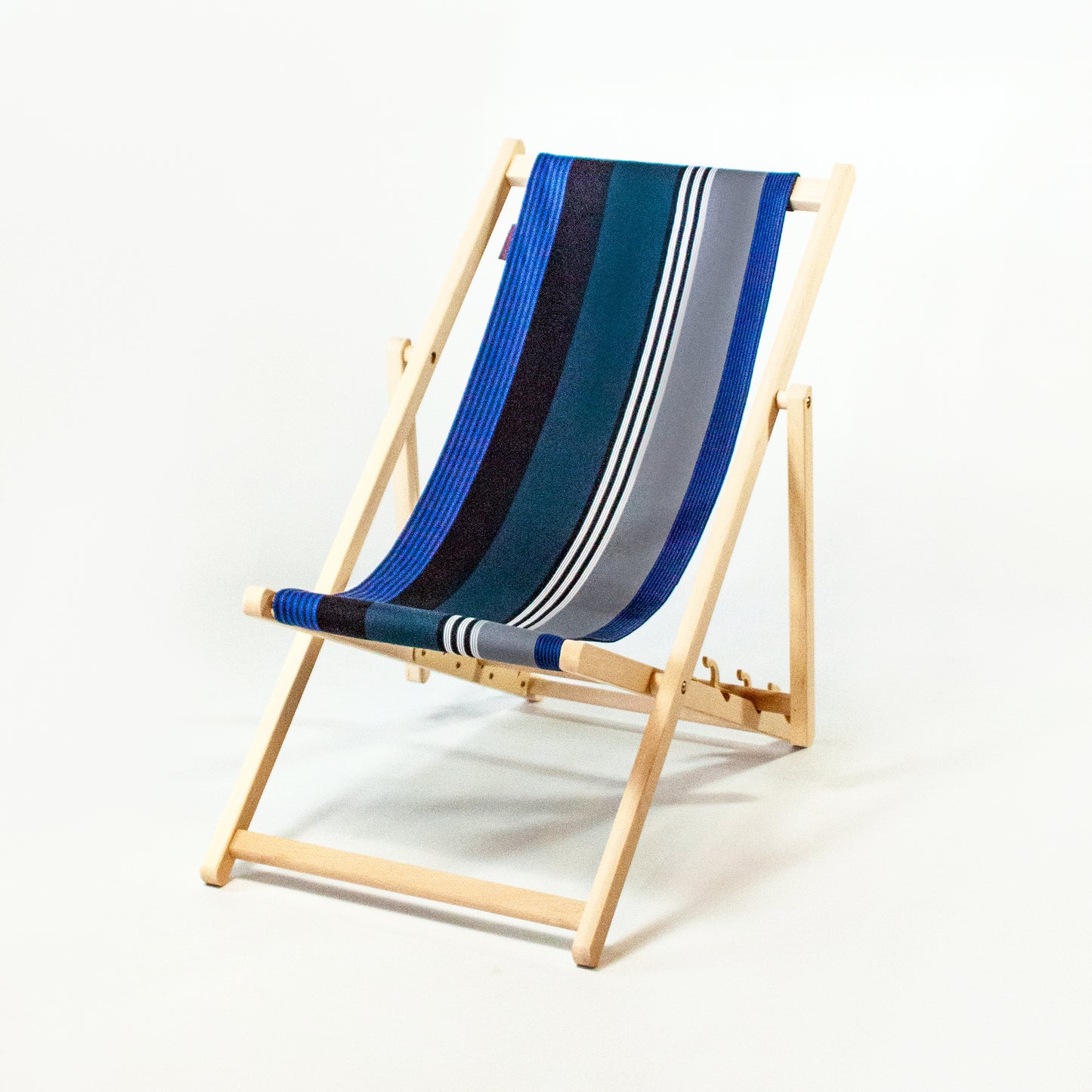 Een eigen strandstoel voor je kindje! Deze leukerd genaamd miramar heeft een mooie blauwe canvas loper, is afneembaar uit het frame en wasbaar.